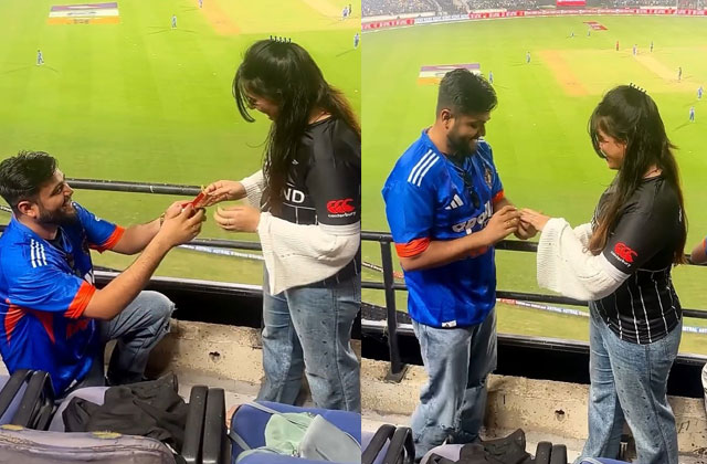 कल इंडिया vs न्यूजीलैंड के मैच में न्यूजीलैंड की लड़की को भारतीय लड़के ने सबके सामने घुटनों पर बैठकर प्रपोज कर दिया