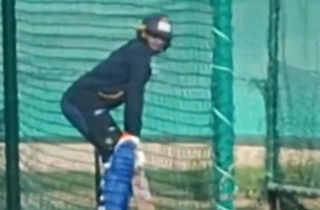 हालांकि मैच की पिच तय नहीं हुई थी इसलिए भारतीय क्रिकेट बोर्ड (BCCI) के नियमों के अनुसार उन्हें वहां बल्लेबाजी करने की इजाजत नहीं थी। फिर उन्होंने लगभग 40 मिनट तक बाएं हाथ की स्पिन गेंदबाजी की और मुख्य कोच तथा सहायक कोच उदय कौल के साथ बल्लेबाजी के बारे में बात की। जब पूरी टीम का सत्र पूरा हो गया तो कप्तान के लिए पैड पहनने का समय था।