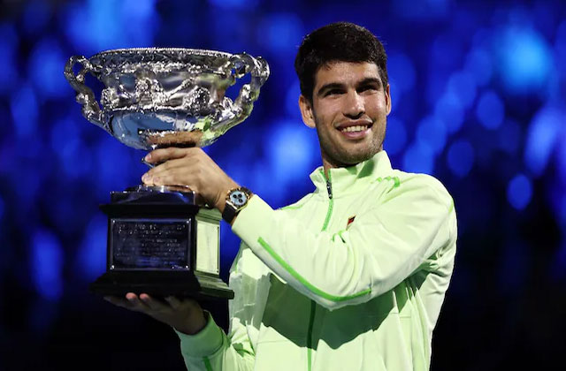 सोमवार को अल्काराज ने मेलबर्न के रॉयल एग्ज़िबिशन बिल्डिंग में आयोजित एक सेलिब्रेशन फोटोशूट में भी हिस्सा लिया, जहां ऑस्ट्रेलियन ओपन जीत का जश्न मनाया गया।