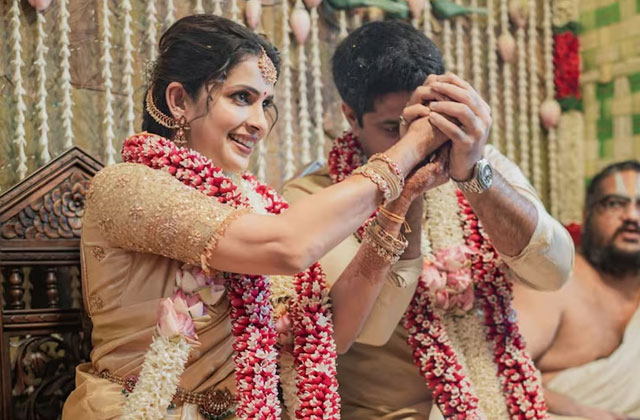 संयुक्ता और अनिरुद्ध की शादी बेहद सादगी और पारंपरिक माहौल में संपन्न हुई। संयुक्ता ने गोल्डन कलर की खूबसूरत साड़ी के साथ टेम्पल ज्वेलरी पहनी, जो उनकी दक्षिण भारतीय लुक को और निखार रही थी। अनिरुद्ध ने गोल्डन-टोन शर्ट और पारंपरिक धोती पहनकर अपने वेडिंग लुक को पूरा किया। उनकी शादी की तस्वीरें इंटरनेट पर आते ही तेज़ी से वायरल हो गईं, फैंस ने कमेंट सेक्शन में तमाम शुभकामनाएं और दिल वाले इमोजी भेजे।