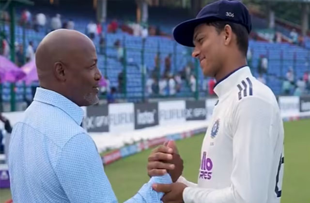 नई दिल्ली: भारत के ओपनर यशस्वी जयसवाल ने वेस्ट इंडीज़ के खिलाफ दूसरे टेस्ट मैच में कमाल का प्रदर्शन किया और 175 रन की शानदार पारी खेली। जयसवाल की पारी में 22 चौके शामिल थे और उन्होंने टीम को मजबूत स्थिति में पहुंचाया। मैच के दूसरे दिन के खेल के बाद, जयसवाल की तारीफ करने के लिए वेस्ट इंडीज़ के पूर्व कप्तान ब्रायन लारा भी मैदान पर आए। लारा ने मस्ती भरे अंदाज़ में कहा, “हमारे गेंदबाजों को इतनी जोर से मत पीटना!”