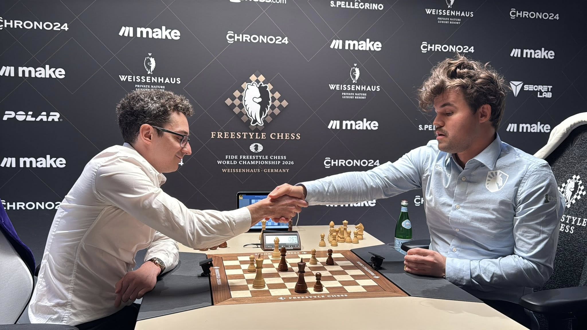 वाइजनहाउस ,जर्मनी ( निकलेश जैन ) फ़ीडे फ्रीस्टाइल शतरंज विश्व चैम्पियनशिप 2026 के फाइनल में दुनिया के नंबर एक खिलाड़ी नॉर्वे के मैगनस कार्लसन का सामना अमेरिकी ग्रैंडमास्टर फैबियानो करुआना से होगा। दोनों खिलाड़ियों ने शनिवार को खेले गए सेमीफाइनल मुकाबलों में जीत दर्ज कर खिताबी मुकाबले में जगह बनाई। कार्लसन के पास अब अपने करियर का 21वां विश्व खिताब जीतने का मौका है।