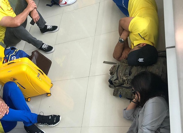 धोनी ने यह तस्वीर शेयर करते हुए लिखा 'आईपीएल टाइमिंग के आदी होने के बाद अगर सुबह की फ्लाइट हो तो यही होता है।' गुरुवार को जयपुर में राजस्थान रॉयल्स और चेन्नई का मैच होना है जिसके लिए धोनी तथा उनकी टीम चेन्नई एयरपोर्ट पर फ्लाइट का इंतजार कर रही थी और इसी दौरान ये फोटो खींची गई।