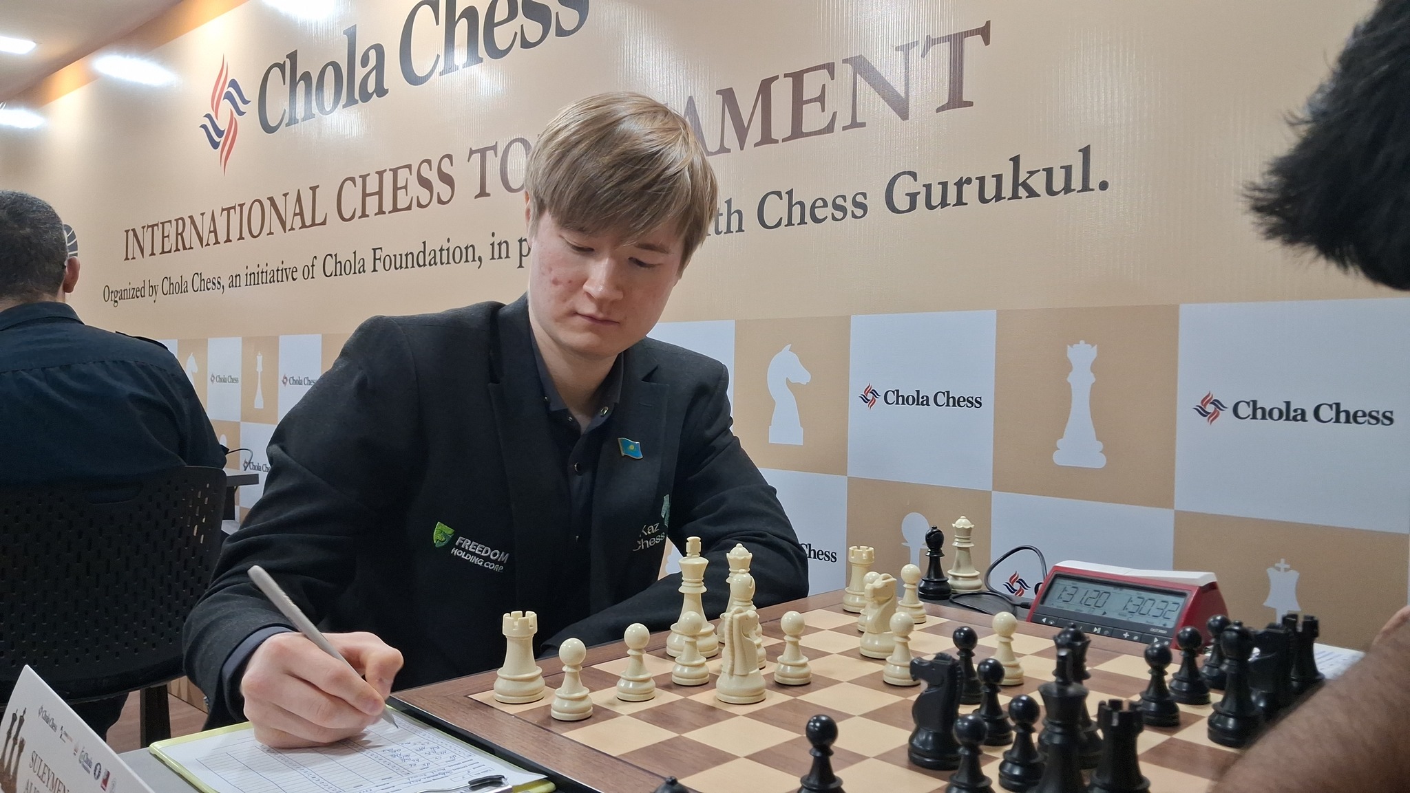 चेन्नई ( निकलेश जैन ) भारत में ज़्यादा से ज़्यादा ग्रैंडमास्टर बनाने के उद्देश्य से शुरू हुए प्रथम छोला शतरंज ग्रैंडमास्टर्स नॉर्म टूर्नामेंट में अब पहला पड़ाव ख़त्म हो चुका है और अब सिर्फ़ अंतिम चार राउंड बाक़ी है . आज खेले गए पाँचवें राउंड के बाद कजाकिस्तान के अलीशेर सुलेमेनोव 3.5 अंक बनाकर सबसे आगे चल रहे है ।ग्रैंड मास्टर नार्म हासिल करने की दौड़ में भारत के एथन वाज, आरोण्यक घोष और औदी अमेय 3 अंक बनाकर उम्मीद क़ायम किए हुए है दरअसल उन्हें 9 राउंड के बाद कम से कम छह अंक हासिल करने है ऐसे में बच्चे हुए चार राउंड में 3 अंक बनाने की चुनौती तीनो के सामने है .