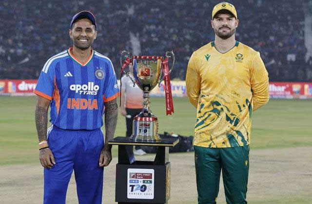 स्पोर्ट्स डेस्क : भारत और साउथ अफ्रीका के बीच 5 मैचों की टी20 इंटरनेशनल सीरीज का आखिरी मुकाबला अहमदाबाद के नरेंद्र मोदी स्टेडियम में खेला जा रहा है। दक्षिण अफ्रीका ने टॉस जीतकर भारत को पहले बल्लेबाजी का न्यौता दिया है। दक्षिण अफ्रीका ने टीम में एक बदलाव किया है और लिंडे की जगह नोर्टजे आए हैं।। भारतीय टीम में हर्षित राणा की जगह जसप्रीत बुमराह आए हैं। कुलदीप की जगह वाशिंगटन सुंदर को मौका मिला है। गिल को लखनऊ में थोड़ी चोट लगी थी, इसलिए संजू सैमसन आए हैं।