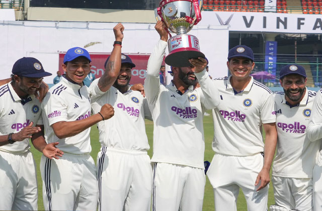 गौर है कि दिल्ली के अरुण जेटली स्टेडियम में भारत और वेस्ट इंडीज के बीच खेले गए दूसरे टेस्ट में कई रिकॉर्ड टूटे। भारत ने यह मैच 7 विकेट से जीतकर दो मैचों की सीरीज 2-0 से क्लीन स्वीप की। यशस्वी जायसवाल और शुभमन गिल ने शतक लगाए, कुलदीप यादव ने 5 विकेट लिए, जबकि जसप्रीत बुमराह ने सभी तीन फॉर्मेट में 50 मैच खेलने का रिकॉर्ड बनाया। इसके अलावा, ध्रुव जुरेल, जॉन कैंपबेल, जेडन सील्स और गिल जैसे खिलाड़ियों ने भी अपने-अपने कीर्तिमान बनाए।