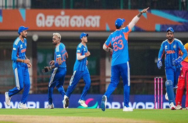 भारत के लिए अर्शदीप सिंह ने तीन विकेट लिये। वरुण चक्रवर्ती, अक्षर पटेल और शिवम दुबे ने एक-एक बल्लेबाज को आउट किया। इससे पहले भारत ने आज यहां जिम्बाब्वे के खिलाफ टी- 20 विश्वकप के इतिहास का दूसरा सबसे बड़ा स्कोर 256 रन बनाया। जिम्बाब्वे ने टॉस जीतकर पहले गेंदबाजी करने का फैसला किया। बल्लेबाजी करने उतरी संजू सैमसन और अभिषेक शर्मा की सलामी जोड़ी ने 48 रन जोड़े। चौथे ओवर में ब्लेसिंग मुजारबानी ने संजू सैमसन को आउट कर जिम्बाब्वे को पहली सफलता दिलाई। संजू सैमसन ने 15 गेंदों में एक चौका और दो छक्के लगाते हुए 24 रन बनाये। इसके बाद बल्लेबाजी करने आये इशान किशन ने अभिषेक शर्मा के साथ दूसरे विकेट के लिए 72 रन जोड़े। 11वें ओवर में सिकंदर रजा ने इशान किशन को आउटकर इस साझेदारी को तोड़ा।