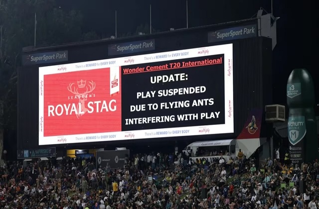 पिछले साल सेंचुरियन में भारत और दक्षिण अफ्रीका के बीच खेले गए टी20 मैच को मैदान पर अचानक उड़ने वाली चींटियों की वजह से लगभग 30 मिनट के लिए रोका गया। इस दौरान खिलाड़ी और अंपायर सभी को सुरक्षा सुनिश्चित करने के लिए इंतजार करना पड़ा।