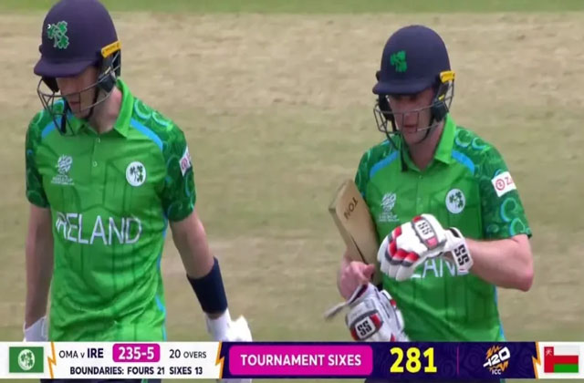 स्पोर्ट्स डेस्क : ICC Men's T20 World Cup 2026 के 22वें मुकाबले में आयरलैंड ने ओमान के खिलाफ 5 विकेट पर 235 रन बनाकर टूर्नामेंट का दूसरा सबसे बड़ा स्कोर खड़ा कर दिया। कोलंबो में खेले गए इस मैच में ओमान ने टॉस जीतकर पहले गेंदबाजी चुनी, लेकिन यह फैसला उनके लिए महंगा साबित हुआ।
