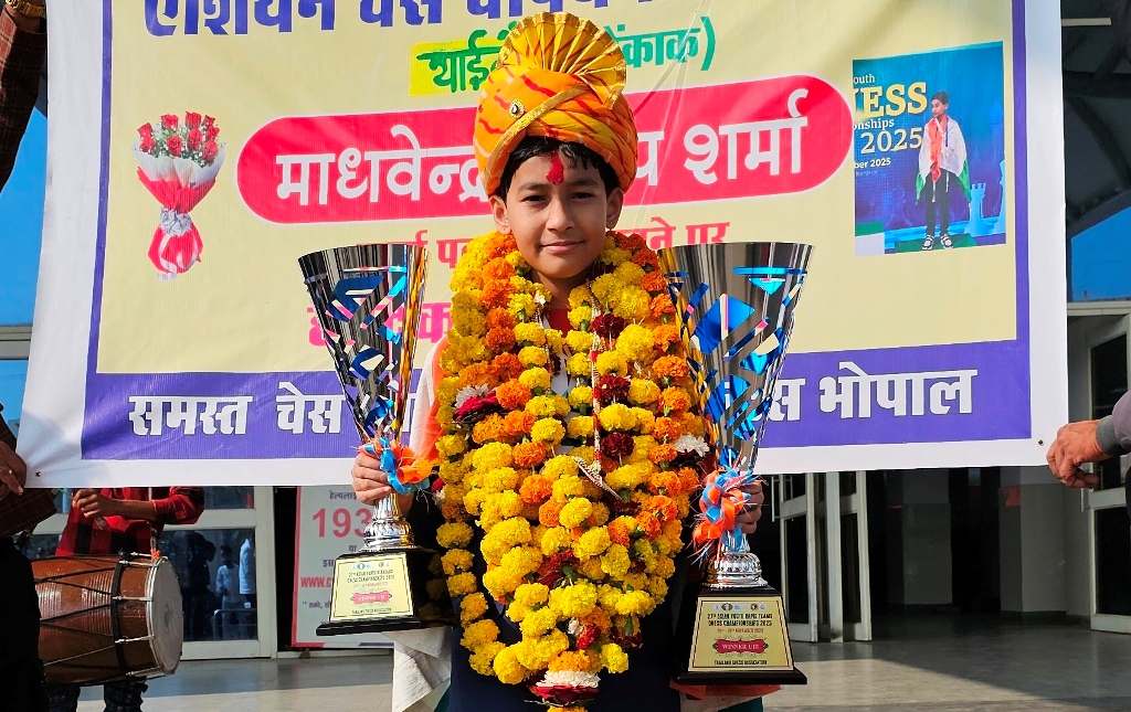 भोपाल ( निकलेश जैन) मध्य प्रदेश के भोपाल के रहने वाले माधवेन्द्र प्रताप शर्मा ने अपने खेल जीवन की अब तक की सबसे बड़ी सफलता हासिल करते हुए थाईलैंड में सम्पन्न हुई एशियन शतरंज चैंपियनशिप में अंडर 12 आयु वर्ग का खिताब अपने नाम कर लिया है। माधवेन्द्र ने कुल 9 राउंड में छह जीत और तीन ड्रॉ के साथ 7.5 अंक बनाते हुए पहला स्थान प्राप्त करते हुए स्वर्ण पदक हासिल किया, इससे पहले कुछ दिनो पूर्व ही मलेशिया में कॉमनवैल्थ शतरंज चैंपियनशिप में भी स्वर्ण पदक अपने नाम किया था। एशियन विजेता बनने के साथ ही अब माधवेन्द्र ने फीडे मास्टर का टाइटल अपने नाम कर लिया है और उनकी लाइव रेटिंग 2293 पहुँच गयी है। फीडे मास्टर बनने वाले मध्य प्रदेश के सबसे कम उम्र के खिलाड़ी बन गए है।