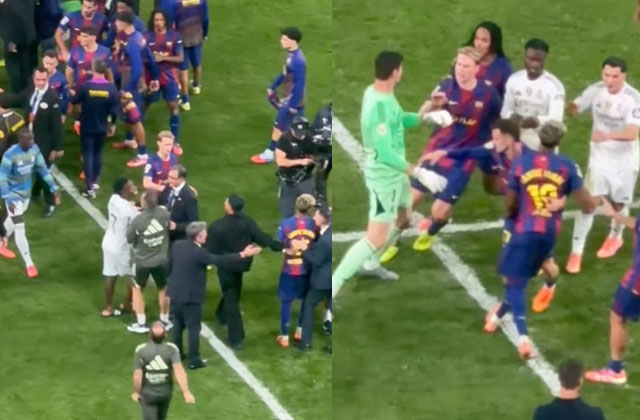 बार्सिलोना के पेड्री को अंतिम सीटी बजने से ठीक पहले मैदान से बाहर भेजे जाने के बाद दोनों टीमों के बेंच पर मौजूद खिलाड़ियों के बीच हाथापाई हो गई। यह विवाद मैच खत्म होने के बाद भी जारी रहा, जिसमें मैड्रिड के फॉरवर्ड विनिसियस जूनियर और बार्सिलोना के स्टार फॉरवर्ड लामिन यामल भी शामिल थे। विनिसियस और यामल के बीच मैच के दौरान भी कई बार बहस हुई। विनिसियस ने यामल की ओर इशारा किया कि बार्सिलोना का यह स्टार बहुत ज़्यादा बोल रहा है।