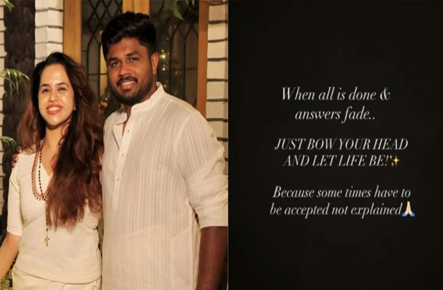 इस बीच बढ़ती आलोचना के बीच संजू सैमसन की पत्नी चारुलता रमेश ने इंस्टाग्राम पर लिखा, “When all is done & answers fade.. Just bow your head and let life be! Because sometimes have to be accepted, not explained.”