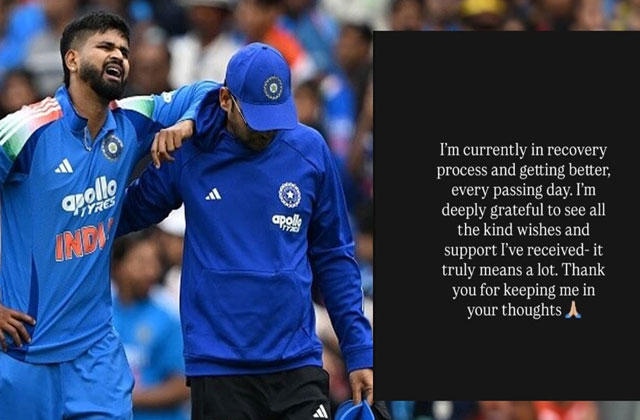 गुरुवार को अय्यर ने अपने सोशल मीडिया पर एक भावुक पोस्ट साझा करते हुए लिखा, “मैं रिकवरी प्रोसेस में हूं और हर दिन बेहतर महसूस कर रहा हूं। आपके सभी शुभ संदेश और समर्थन के लिए दिल से आभारी हूं। यह मेरे लिए बहुत मायने रखता है।” फैंस और साथी खिलाड़ियों ने उनके इस संदेश पर ढेरों शुभकामनाएं भेजीं।