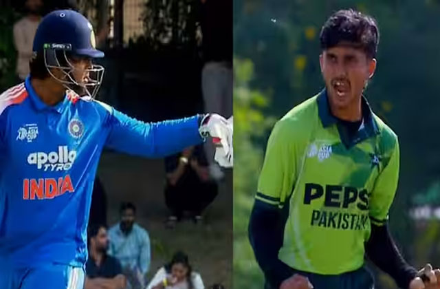 दुबई : भारत-पाकिस्तान के बीच खेले गए U19 एशिया कप फाइनल में सिर्फ क्रिकेट ही नहीं, बल्कि मैदान पर गर्मागर्म माहौल भी देखने को मिला। 14 वर्षीय भारतीय बल्लेबाज वैभव सूर्यवंशी के आउट होने के बाद पाकिस्तान के गेंदबाज अली रजा के साथ उनकी नोकझोंक सोशल मीडिया पर चर्चा का विषय बन गई है।