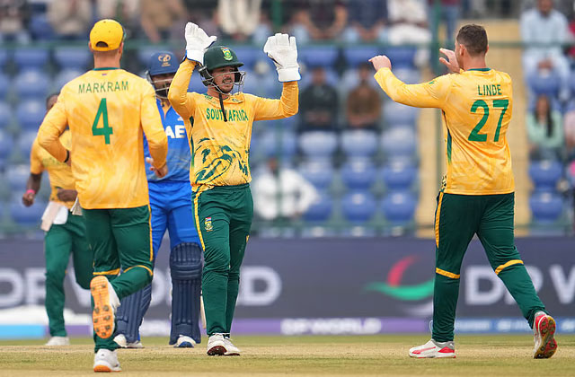 नई दिल्ली : टी20 वर्ल्ड कप 2026 में दक्षिण अफ्रीका ने ऑलराउंड प्रदर्शन करते हुए यूएई को 6 विकेट से हरा दिया। पहले गेंदबाजों ने यूएई को 122/6 पर रोका और फिर 123 रन के लक्ष्य को 13.2 ओवर में हासिल कर ग्रुप स्टेज में लगातार चौथी जीत दर्ज की।