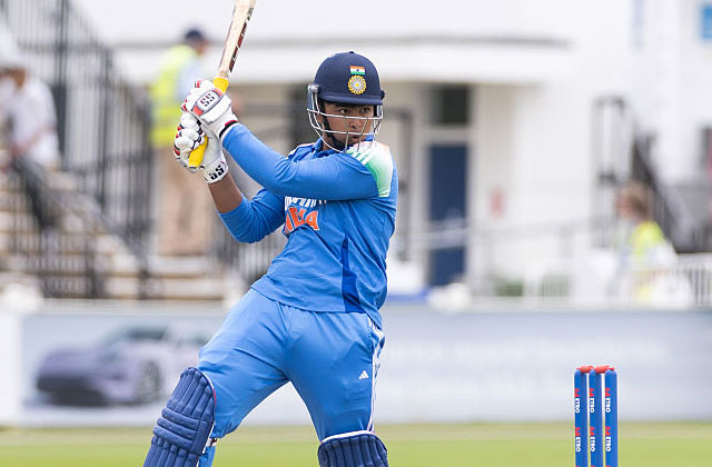 भारत के लिए आरोन जॉर्ज और वैभव सूर्यवंशी ने आक्रामक शुरुआत की। दोनों ने मिलकर सिर्फ 4.1 ओवर में 50 रन जोड़ दिए। जॉर्ज ने 19 गेंदों में 20 रन बनाए और 6.1 ओवर में भारत का स्कोर 67/1 था। इसके बाद भी सूर्यवंशी का हमला जारी रहा, जिससे रन रेट लगातार ऊंचा बना रहा।