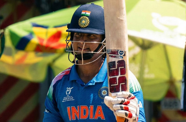 वैभव के साथ पारी की शुरुआत करने वाले एरॉन जॉर्ज ने भी शुरुआती ओवरों में तेज़ बल्लेबाज़ी की। उन्होंने 16 गेंदों में दो चौके और एक छक्के की मदद से 23 रन बनाए, जिससे भारत की रनगति बनी रही। इसके बाद कप्तान आयुष म्हात्रे क्रीज पर आए और उन्होंने 19 गेंदों में 21 रन जोड़े। अपनी पारी में कप्तान ने एक चौका और दो छक्के लगाए। हालांकि, कप्तान के आउट होने के तुरंत बाद वैभव भी पवेलियन लौट गए, जिससे भारत को एक साथ दो झटके लगे।