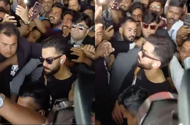 स्पोर्ट्स डेस्क: भारत और न्यूज़ीलैंड के बीच शुरू होने वाली तीन मैचों की वनडे सीरीज से पहले वडोदरा पहुंचे स्टार बल्लेबाज विराट कोहली का जोरदार स्वागत देखने को मिला। बुधवार को जैसे ही कोहली वडोदरा एयरपोर्ट पहुंचे, उन्हें देखने के लिए भारी संख्या में प्रशंसक जमा हो गए। हालात ऐसे बन गए कि भीड़ के बीच सुरक्षा कर्मियों को कोहली को एयरपोर्ट से बाहर उनकी कार तक पहुंचाने में काफी मशक्कत करनी पड़ी।