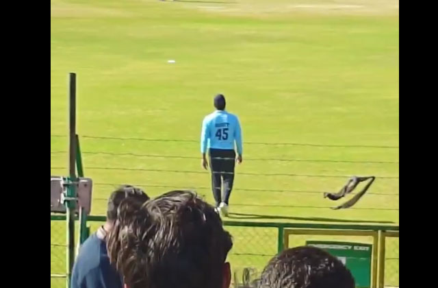 मैच के दौरान जब रोहित शर्मा बाउंड्री के पास फील्डिंग कर रहे थे, तभी स्टैंड्स से एक फैन ने मुंबई के इस स्टार बल्लेबाज़ से मज़ाकिया लहजे में पूछा, “वड़ा पाव खाओगे?” यह सवाल सुनते ही रोहित मुस्कुराए और हाथ हिलाकर साफ़ तौर पर ‘ना’ का इशारा किया। बस इसी पल का वीडियो सोशल मीडिया पर वायरल हो गया। फैंस ने इस पर तरह-तरह के मज़ेदार कमेंट्स किए और एक बार फिर रोहित की सादगी और कूल पर्सनैलिटी की तारीफ की।