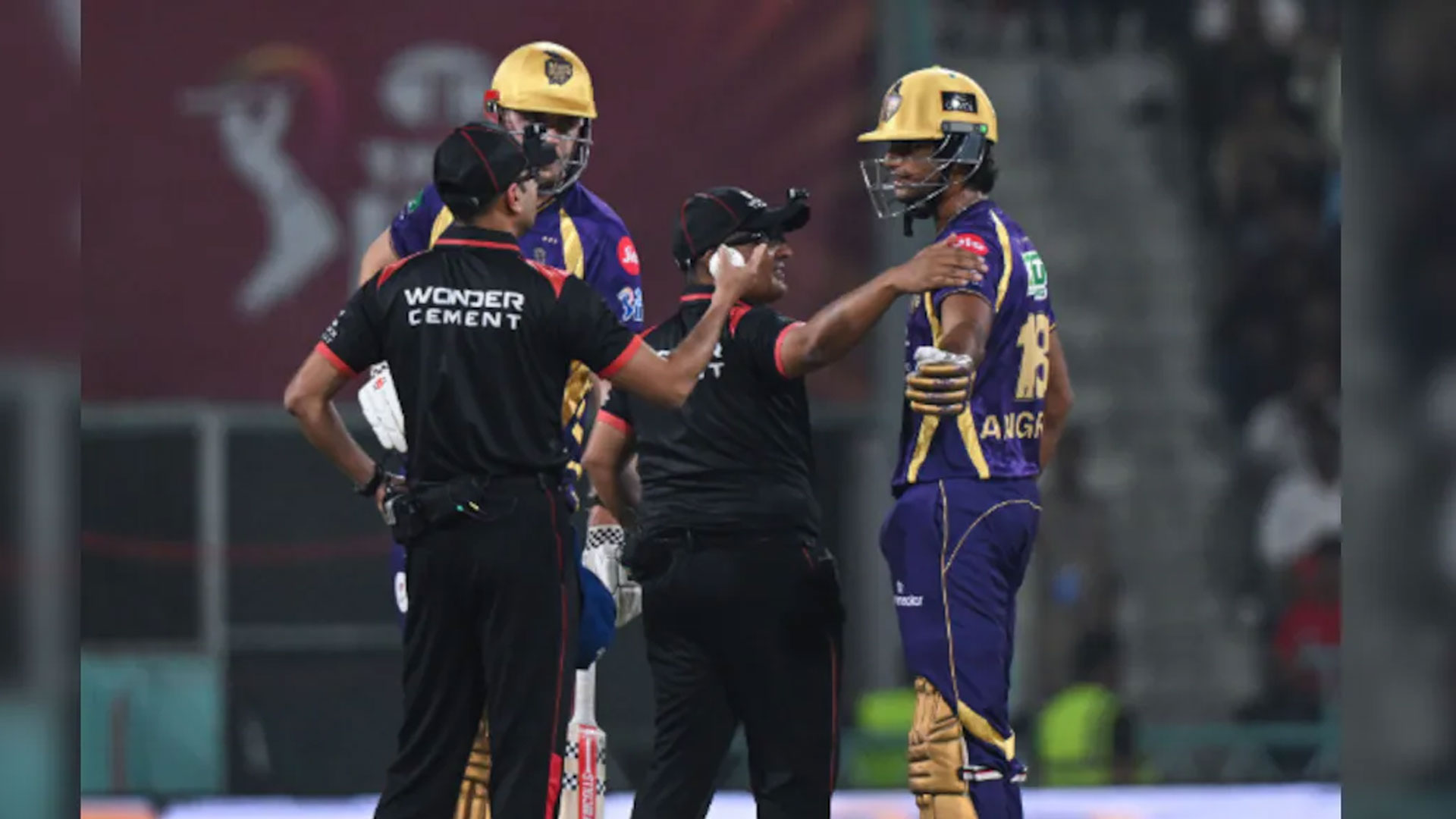 यह घटना KKR की पारी के पांचवें ओवर में हुई, जब रघुवंशी को ‘ऑब्स्ट्रक्टिंग द फील्ड’ के चलते आउट दिया गया। आउट होने के बाद उन्होंने गुस्से में बैट से बाउंड्री कुशन पर प्रहार किया और फिर हेलमेट को डगआउट की ओर फेंक दिया।