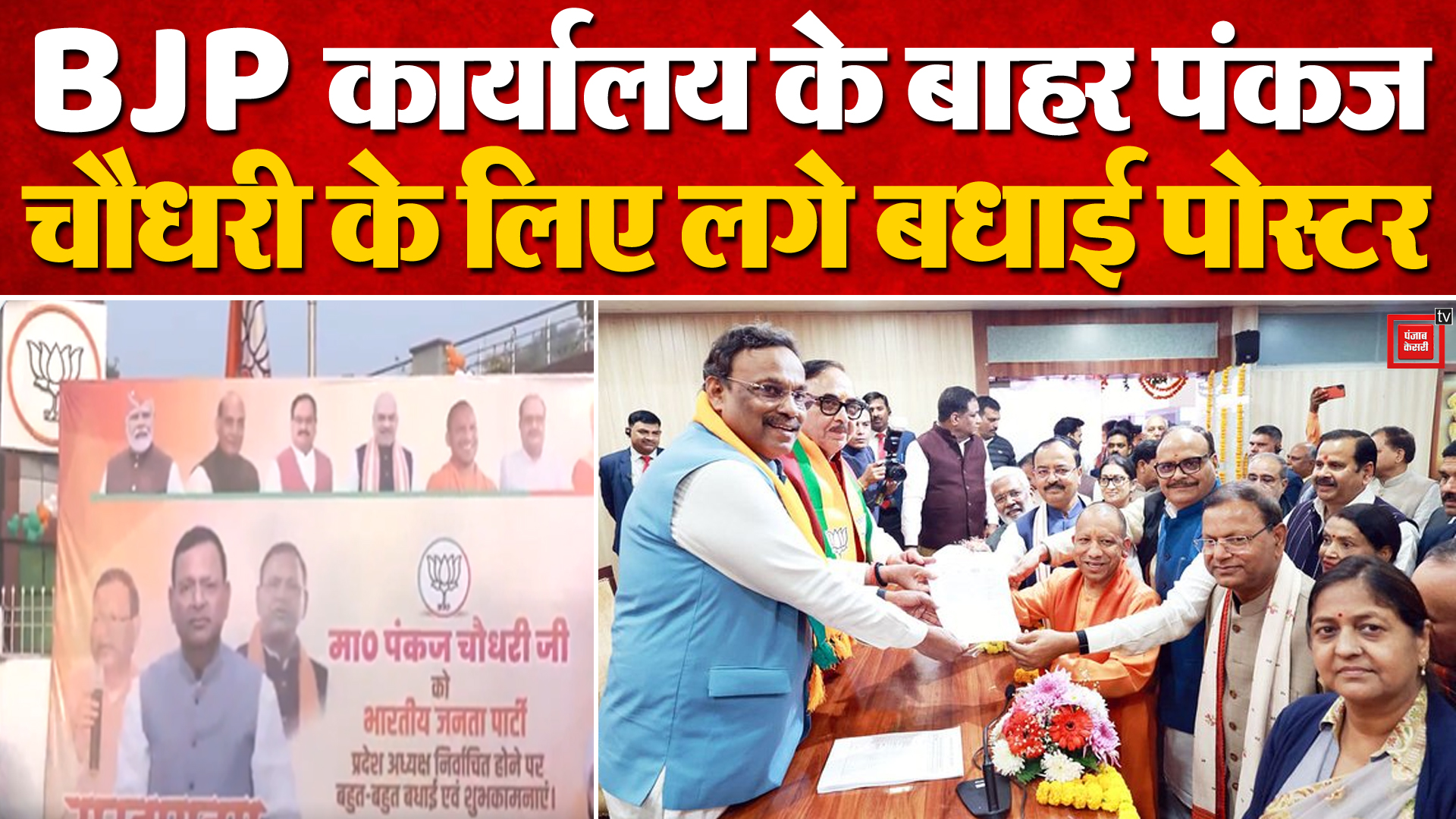 UP BJP New President: Lucknow BJP Office के बाहर Pankaj Chaudhary के लिए लगे बधाई Poster | CM Yogi