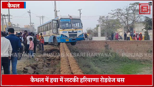 हवा में झूली Haryana Roadways बस, नीचे तलाब और हलक में फंसी सवारियों की जान