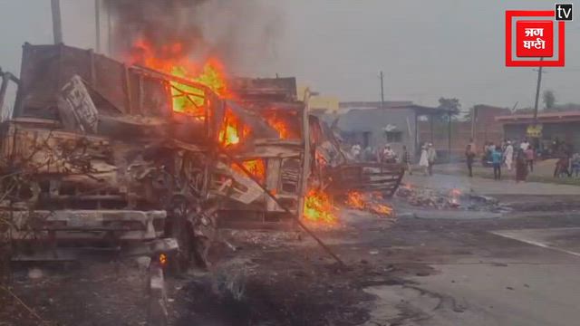दो ट्रकों की भीषण टक्कर के बाद दिखा तबाही का मंजर